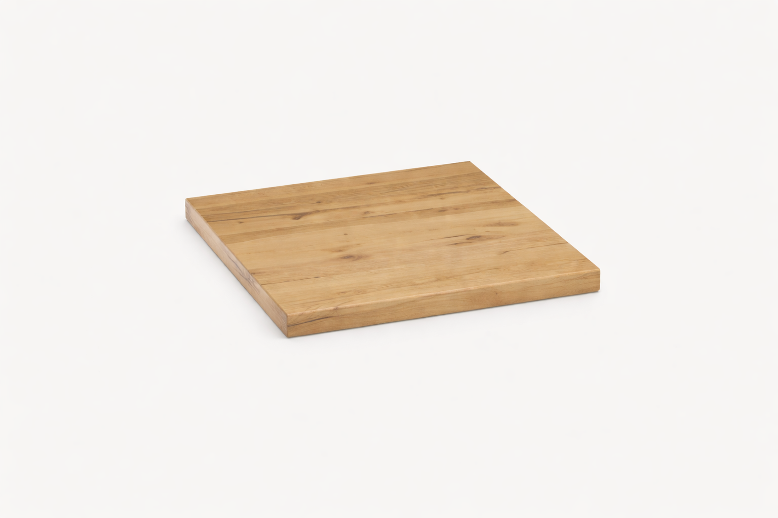 Haut de 40 mm d'épaisseur dans un chêne taché, caractérisé par une surface naturelle et matérielle. Bordure plate en bois plate, pour une solidité structurelle esthétique essentielle et supérieure.