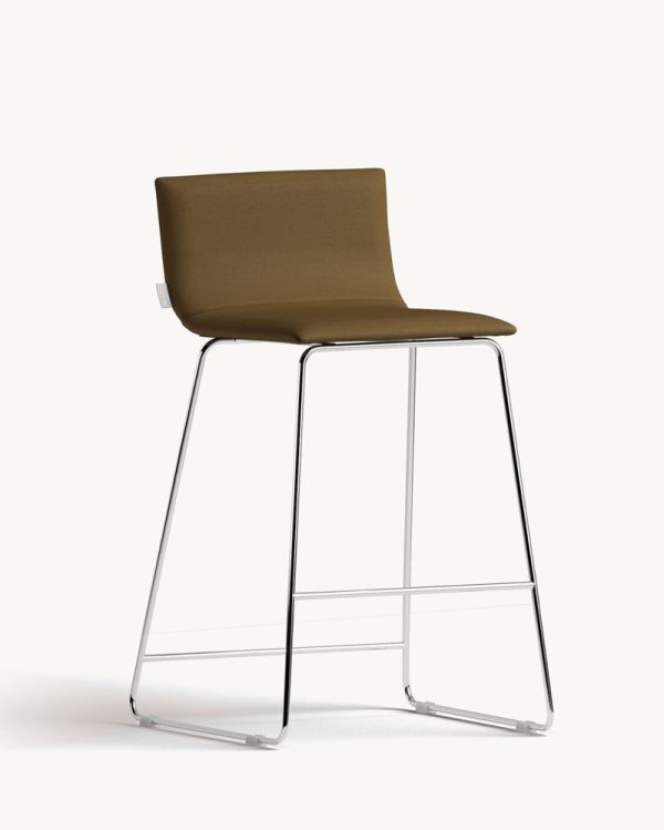 Le siège rembourré dessine une forme essentielle mais accueillante, conçue pour soutenir le corps avec naturel, sans rigidité. La structure en acier sèche la figure, en maintenant une balance visuelle légère et raffinée.