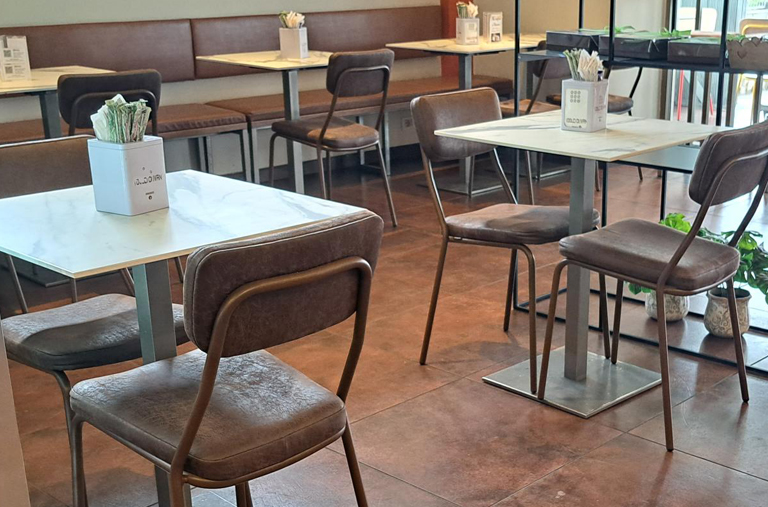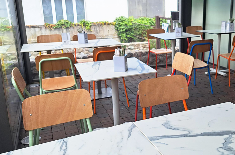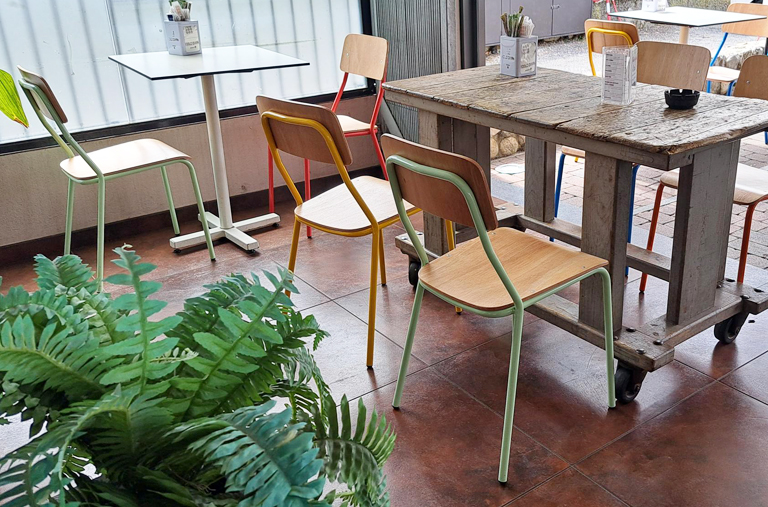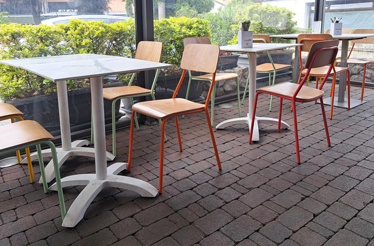CHAIR: FiftyCHAIR: PamelaTABLE: Square Flat with HPL tops