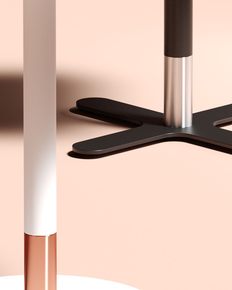 Duplex C'est une base de table en acier avec un design moderne et raffiné, avec une base ronde et une colonne centrale ornée d'un détail décoratif qui améliore son esthétique. Solide et stable, il est idéal pour les environnements contractuels, l'hospitalité et les espaces contemporains, adaptant une polyvalence à différents types de plan.