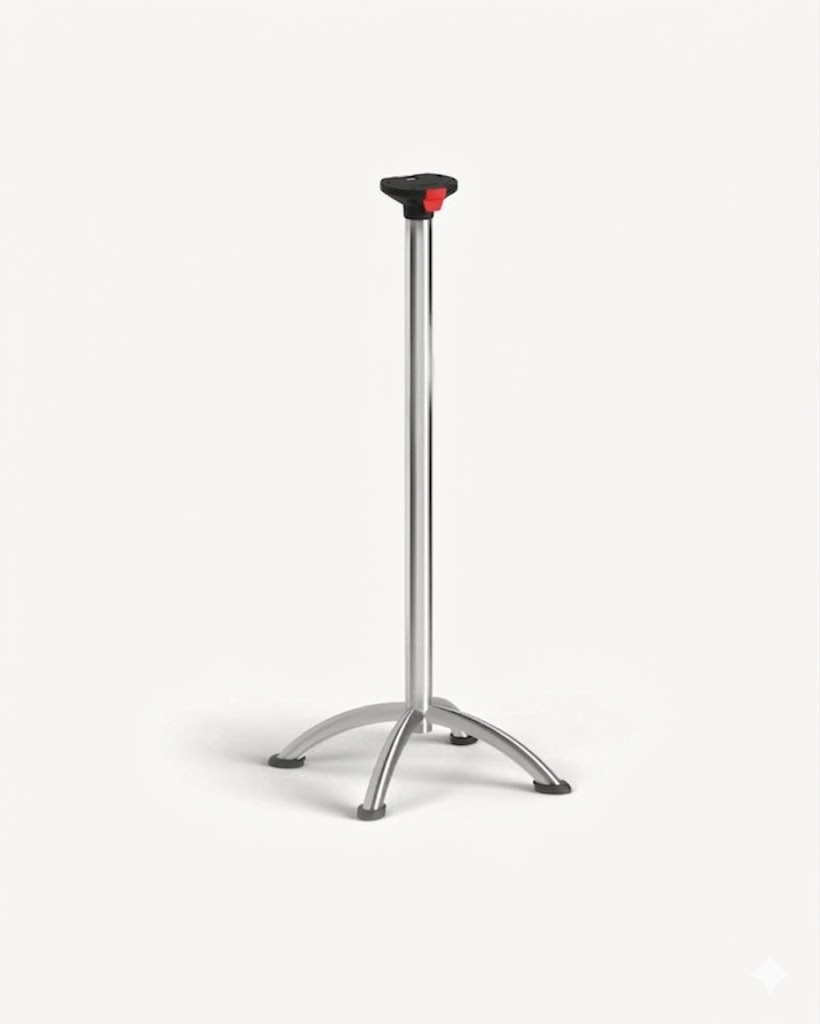 Structures d'éléments tubulaires en acier préparés avec mécanisme de basculement en plastique de haute résistance pour rembourrage des sols. Toutes les installations sont équipées de pieds réglables. Les tables qui adoptent ce système de base peuvent être superposées, palettisées et empilées.