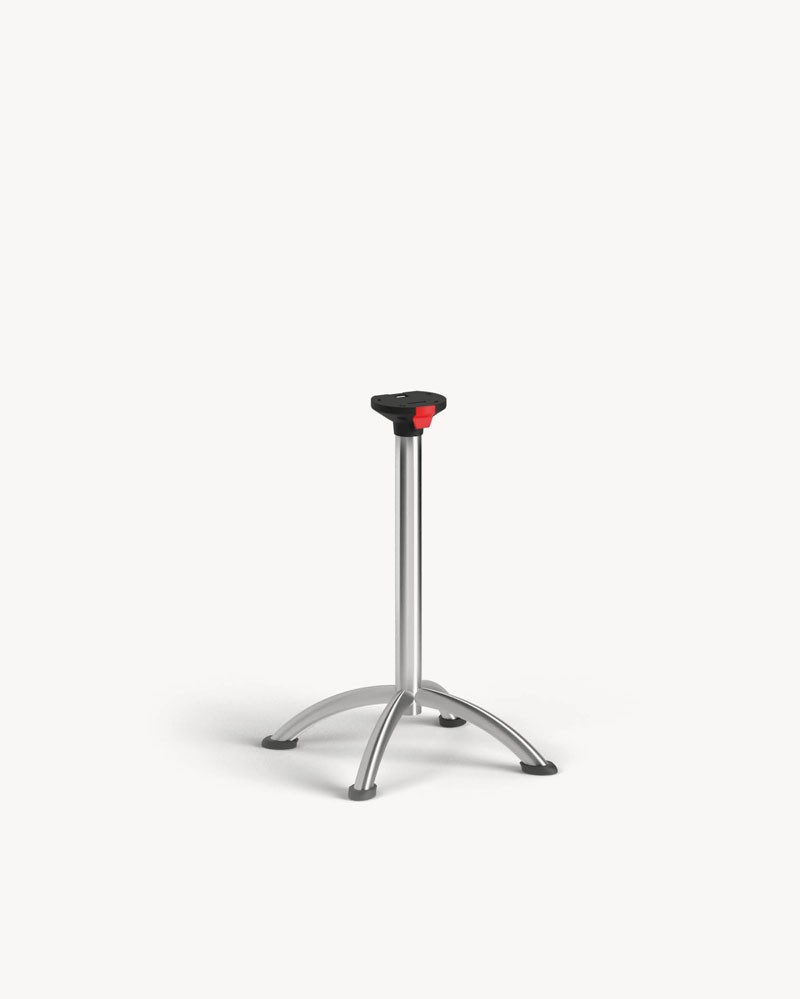 Structures d'éléments tubulaires en acier préparés avec mécanisme de basculement en plastique de haute résistance pour rembourrage des sols. Toutes les installations sont équipées de pieds réglables. Les tables qui adoptent ce système de base peuvent être superposées, palettisées et empilées.