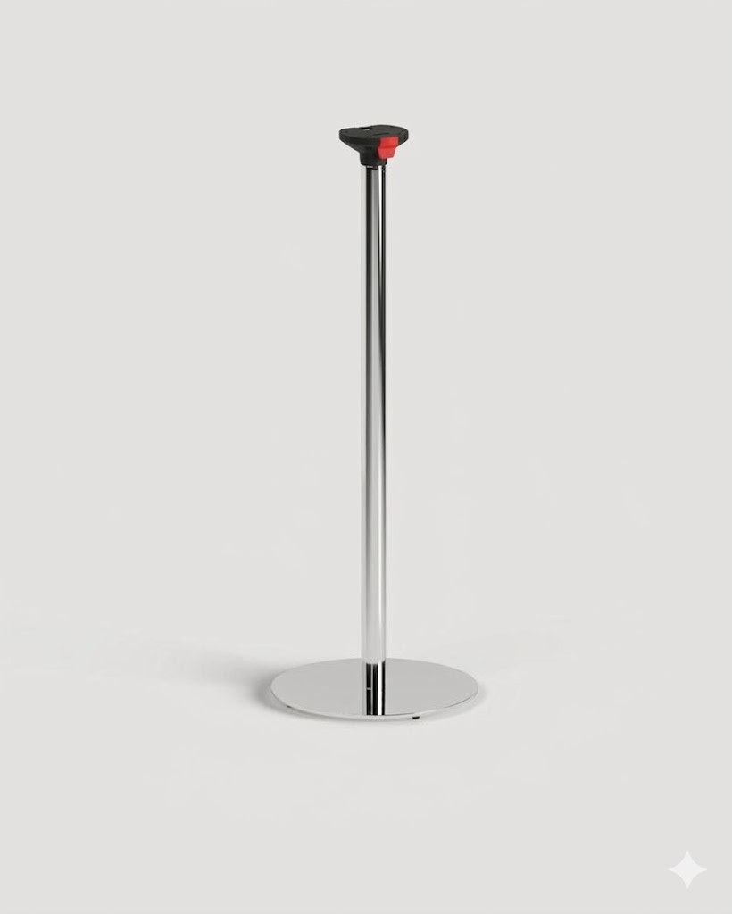 Structures d'éléments tubulaires en acier préparés avec mécanisme de basculement en plastique de haute résistance pour rembourrage des sols. Toutes les installations sont équipées de pieds réglables. Les tables qui adoptent ce système de base peuvent être superposées, palettisées et empilées.