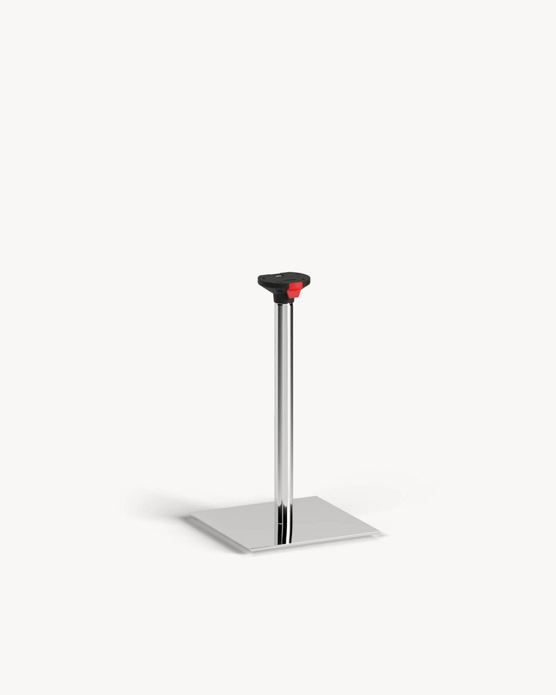 Structures d'éléments tubulaires en acier préparés avec mécanisme de basculement en plastique de haute résistance pour rembourrage des sols. Toutes les installations sont équipées de pieds réglables. Les tables qui adoptent ce système de base peuvent être superposées, palettisées et empilées.