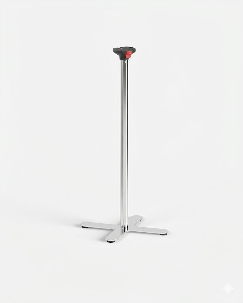 Structures d'éléments tubulaires en acier préparés avec mécanisme de basculement en plastique de haute résistance pour rembourrage des sols. Toutes les installations sont équipées de pieds réglables. Les tables qui adoptent ce système de base peuvent être superposées, palettisées et empilées.