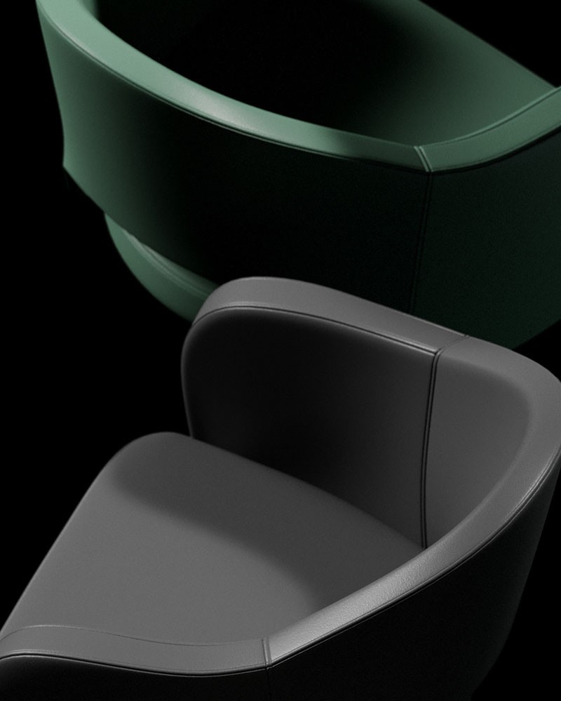 Le dossier enveloppant dessine une courbe douce et continue, conçue pour accompagner le corps avec discrétion, tandis que le siège rembourré amplifie la sensation de confort et de protection. La structure en acier éclaire l'ensemble et définit son équilibre, donnant forme à une chaise qui communique la chaleur, la présence et la convivialité.