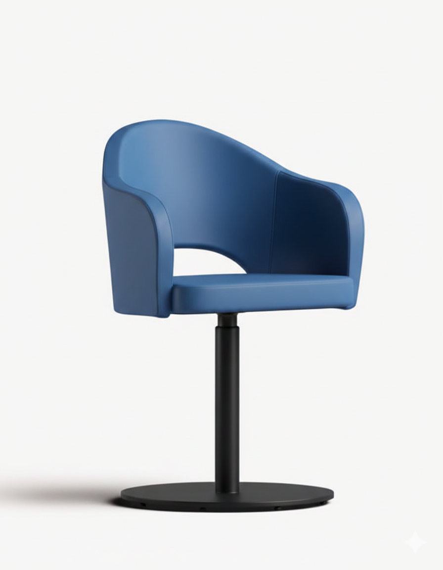 Le dossier enveloppant dessine une courbe douce et continue, conçue pour accompagner le corps avec discrétion, tandis que le siège rembourré amplifie la sensation de confort et de protection. La structure en acier éclaire l'ensemble et définit son équilibre, donnant forme à une chaise qui communique la chaleur, la présence et la convivialité.