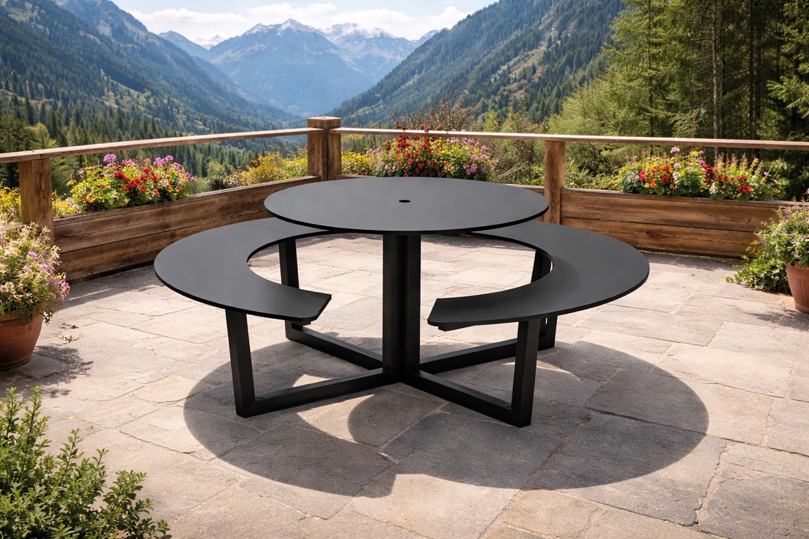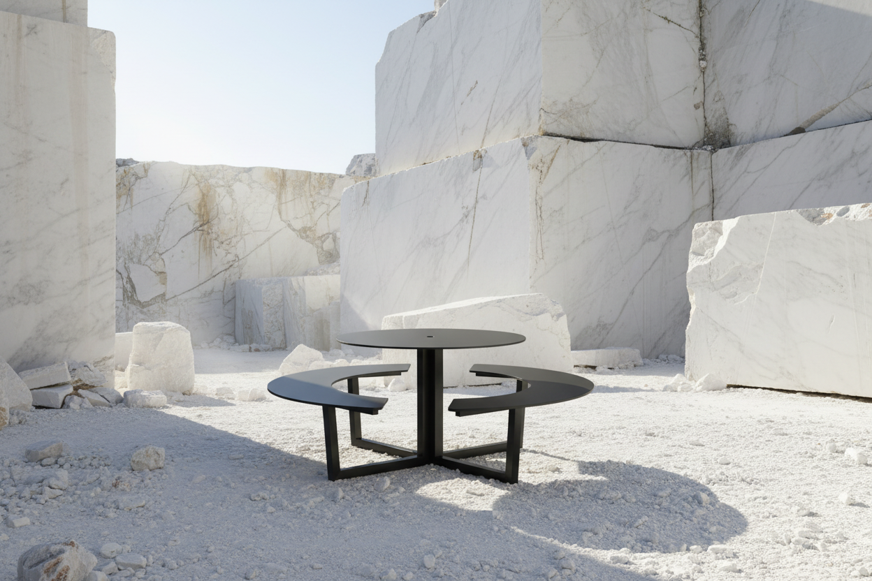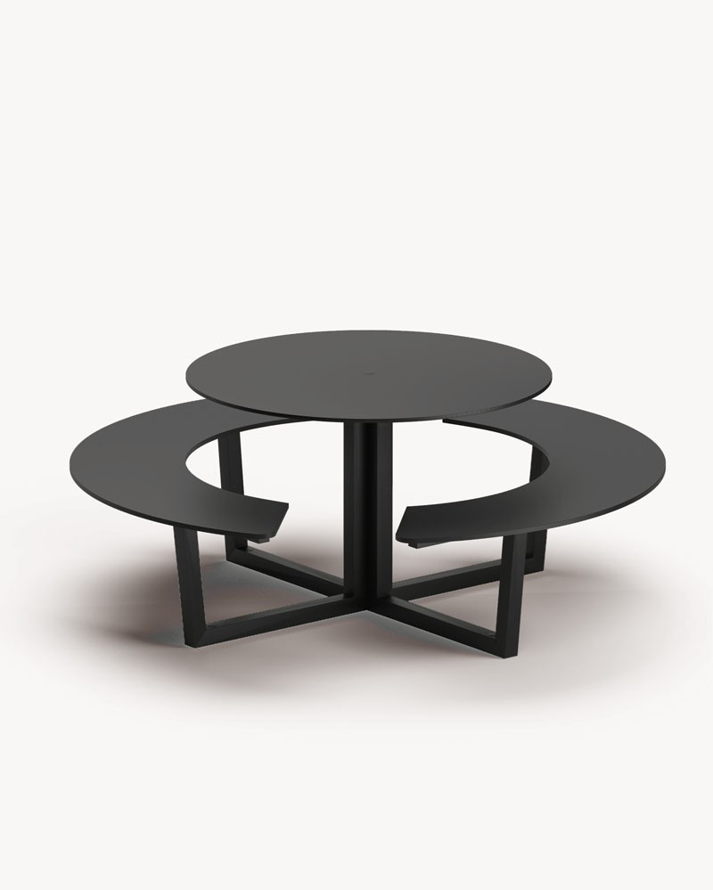 C'est un point de rencontre. Sa forme circulaire est née d'une idée simple et puissante: pas de table en chef, pas de hiérarchie. Tous à la même distance, toutes parties de la même conversation. Un projet qui invite le partage, l'échange, le séjour. La structure en acier inoxydable dessine une base solide et centrale, conçue pour soutenir une utilisation intensive des espaces publics et garantissant la stabilité au fil du temps. Les sessions intégrées suivent le geste naturel du cercle, enveloppant la table en permanence et accueillantes.