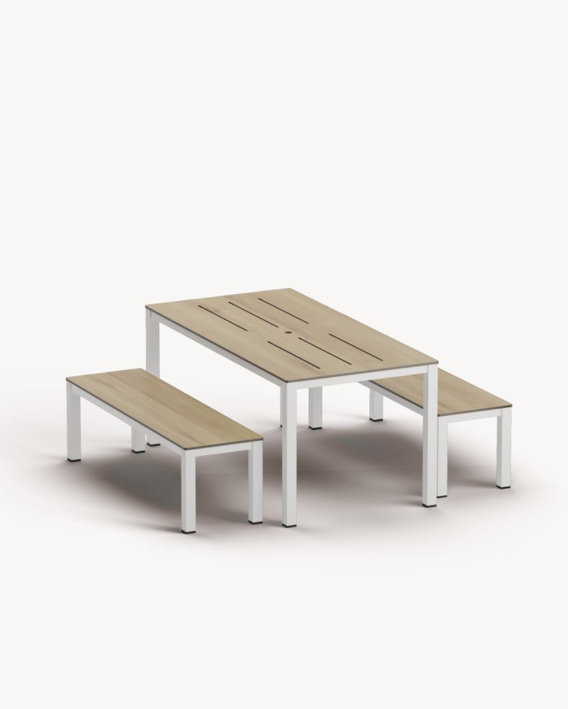 Matias Bt.601 est une table monobloc conçue pour améliorer les espaces extérieurs avec des lignes propres, des proportions équilibrées et des matériaux hautes performances. La combinaison de la structure en acier inoxydable et du plancher HPL garantit la résistance, la fonctionnalité et une esthétique raffinée, parfaite pour les environnements résidentiels et des contrats.
