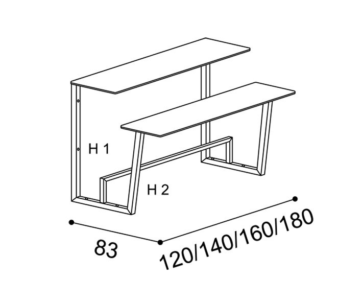 H1 = 107 cm / h2 = 75 cm
