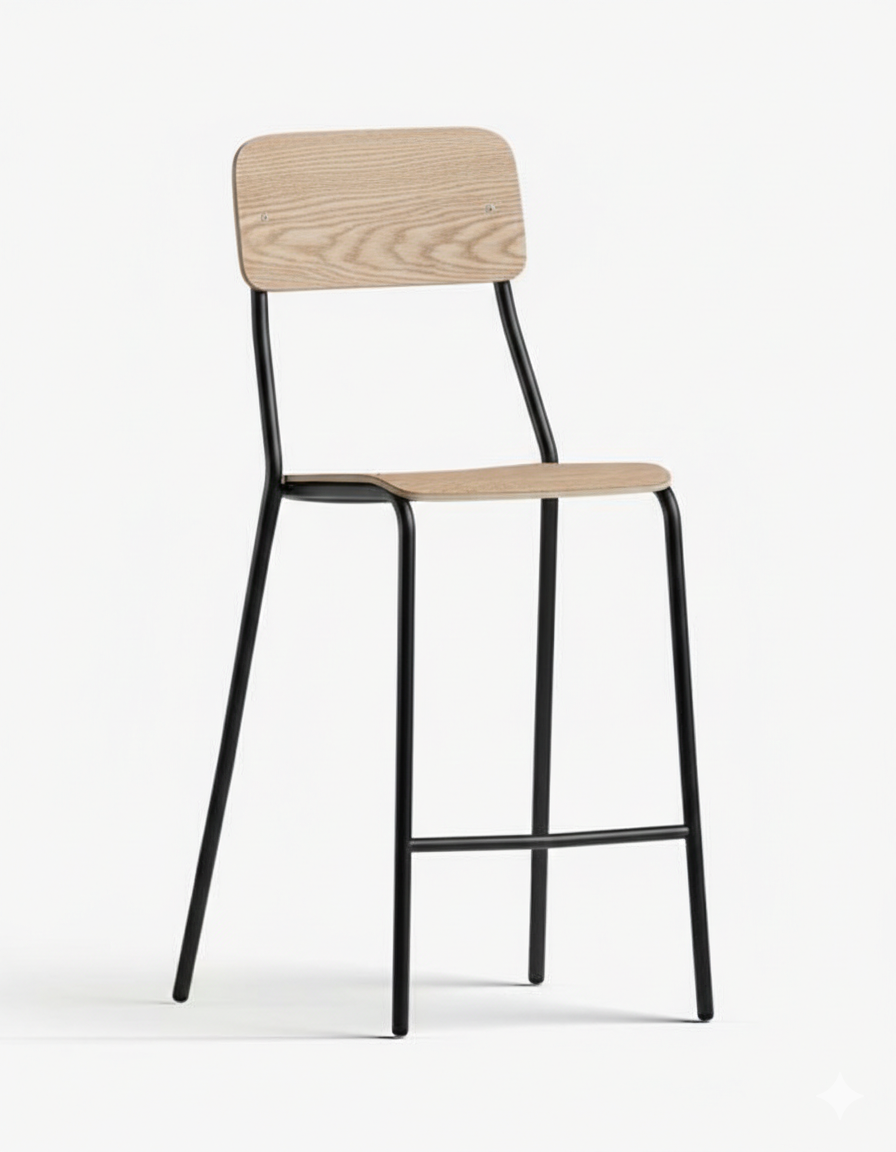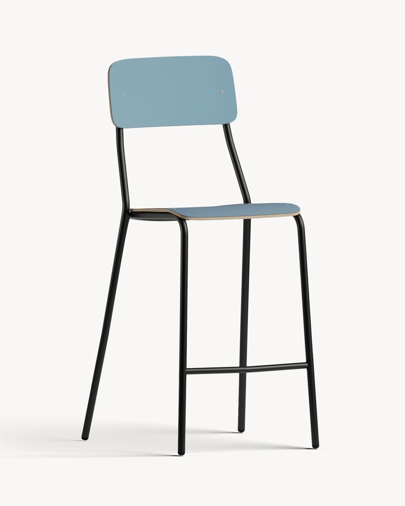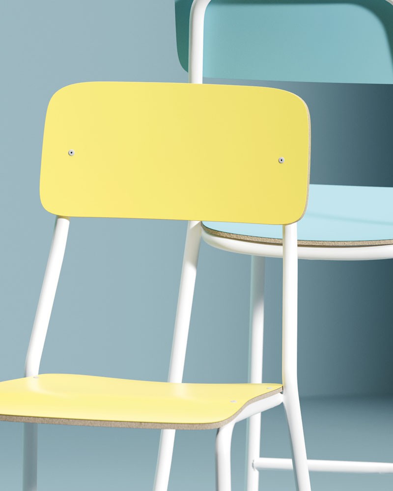 La structure en acier tire une conduite continue et lumineuse, tandis que le siège stratifié définit un caractère pratique et immédiat. C'est une présence discrète mais reconnaissable, conçue pour les espaces dynamiques et informels, où la conception accompagne la vie quotidienne avec naturel et simplicité.